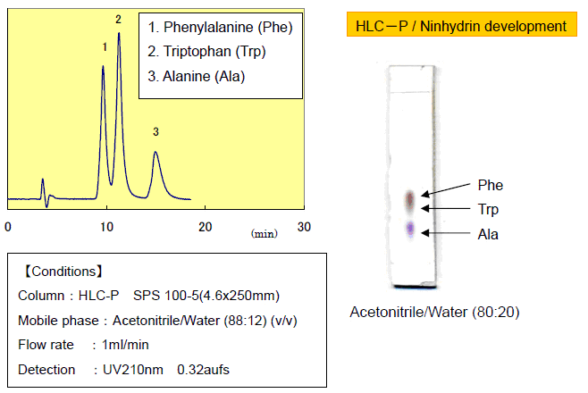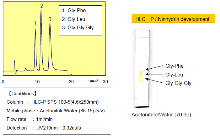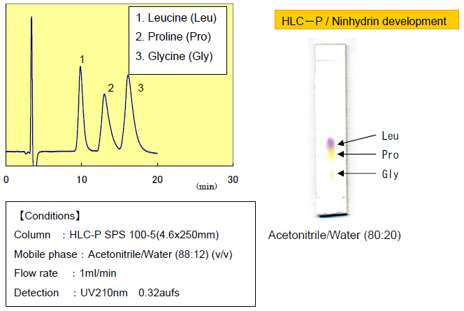 HILIC模式和反相模式是互補的。富士硅化學有限公司開發了兩款HILIC模式的填料,命名為“HLC”硅膠。兩種HLC硅膠都含有兩性的官能團,共價鍵合在硅膠表面。“HLC-A”用于分離純化有機酸、核酸和糖類;“HLC-P”用于分離氨基酸、多肽。