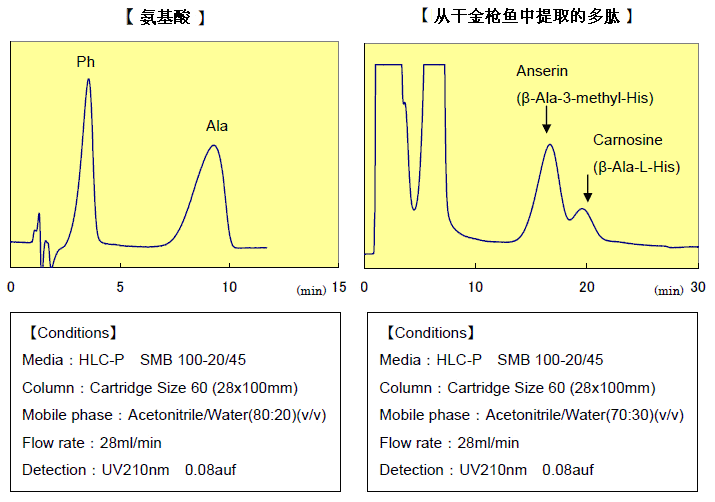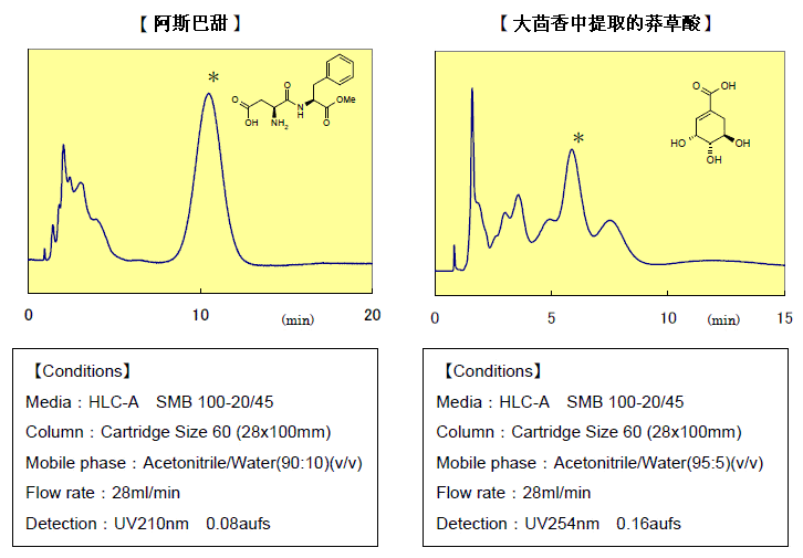 HILIC模式下,初始流動相條件用的是高比例有機溶劑和水。這種洗脫體系使得單一化合物得到分離,并且之后的處理步驟也相對簡化(旋蒸或者凍干)。洗脫體系中水含量的增加,使得樣品更容易被洗脫出來。因此,在HILIC模式中,與水易混合的有機相體系最為常用,比如乙腈-水體系。以下應用給出了使用HLC-A硅膠,在乙腈-水等度體系中,分析和制備的應用。