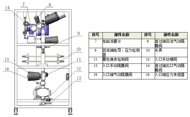 2) equipped with flow, temperature and other sensors, which can calculate the flux and concentration factor online;