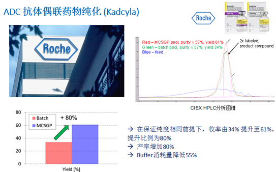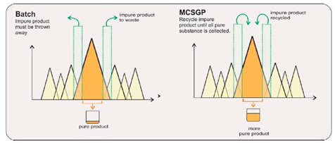 ? ? ?MCSGP工藝,可將含有不純組分的產(chǎn)品回收在一個(gè)封閉的環(huán)內(nèi),進(jìn)行循環(huán)式的層析操作,從而最大限度地提取純產(chǎn)品,使得收率和純度二者兼得。