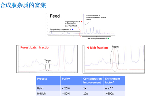 ? ??? ?N-Rich工藝是微量物質的富集過程,比如將產品的相關雜質選擇性地富集在一個循環的層析過程中,待富集至目標量,再進行洗脫回收。該方法特別適用于分離與產品有關的雜質,如異構體和聚集體,并同時用于發現研究。