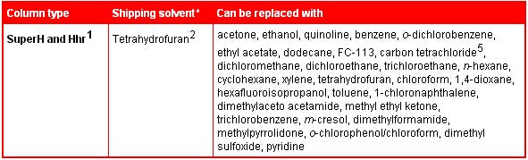 色譜柱的出貨溶劑限定了每種色譜柱可以置換的溶劑類型。