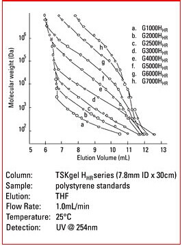 TSKgel G4000Hhr色譜柱內裝填的是多孔的剛性聚合物顆粒。適合對分子量小于400,000 Da的聚合物進行非水相分離。TSKgel G4000Hhr色譜柱的出貨溶劑是THF,可以置換成其他各種有機溶劑。