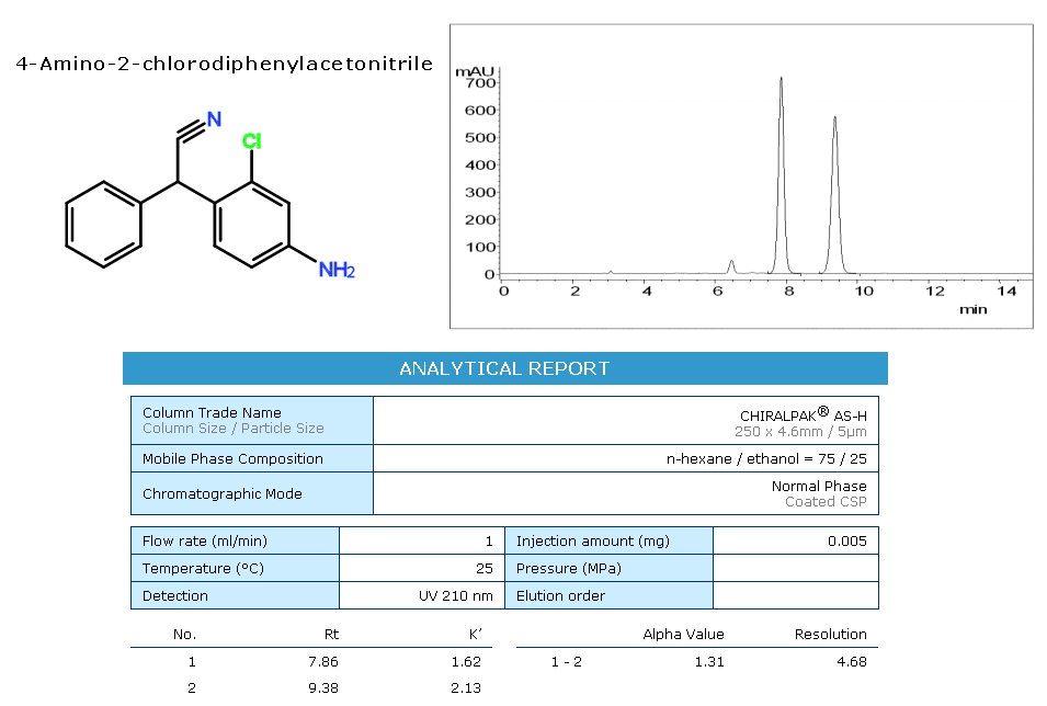 AS為多糖衍生物正相涂敷型手性色譜柱,硅膠表面涂敷有直鏈淀粉-三(S)-α-甲基苯基氨基甲酸酯)。AS為目前世界上使用范圍最廣的一種手性填料,在各類文獻中都報道了AS柱優秀的分離能力和耐受性。CHIRALPAK?AS-3 /?AS-H /?AS適合在正相流動相中使用。提供不同規格的常規分析柱,內徑為2.1mm的微徑柱,及不同內徑粗細的半制備柱、制備柱,您可根據實驗需要選擇合適的規格。